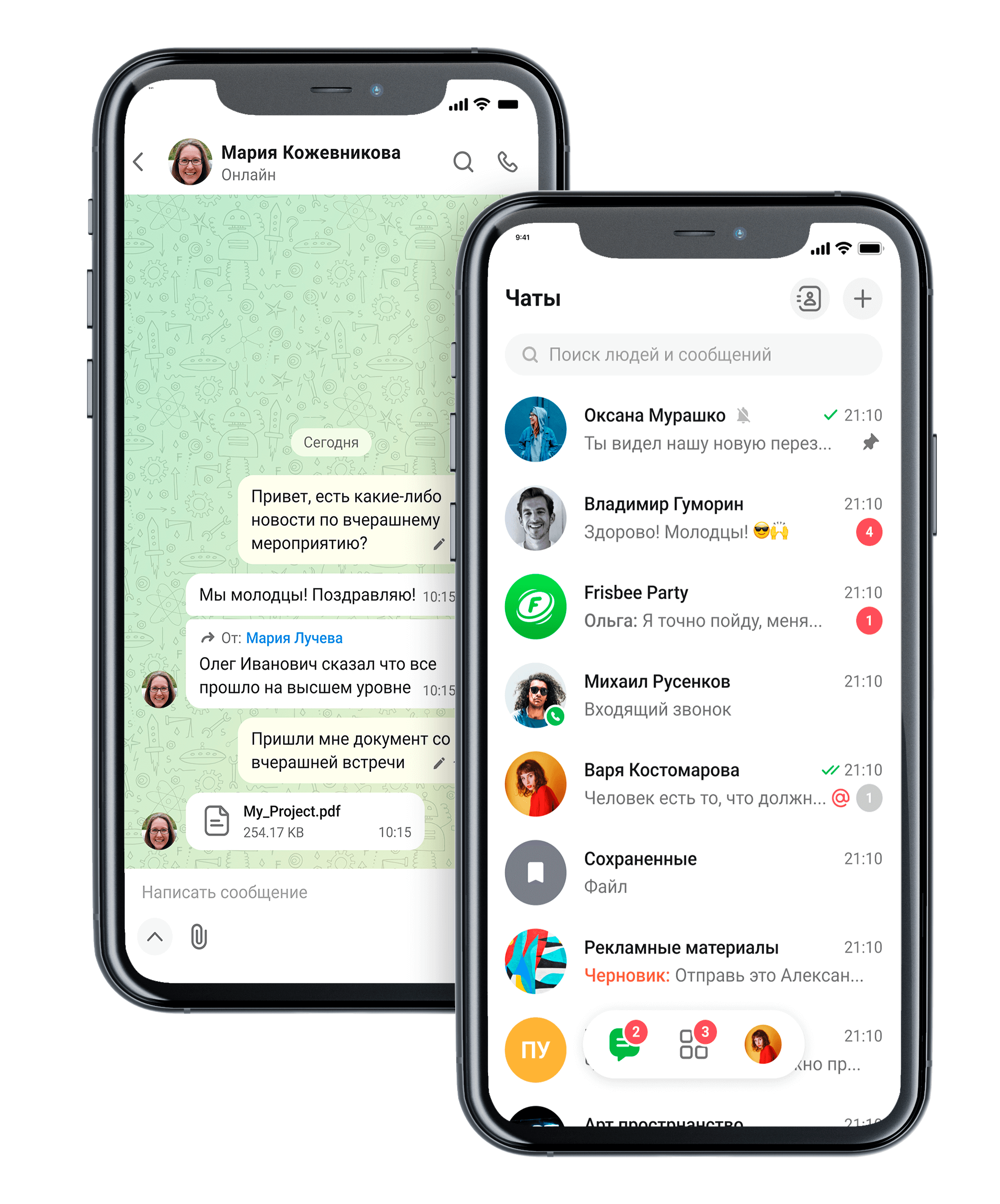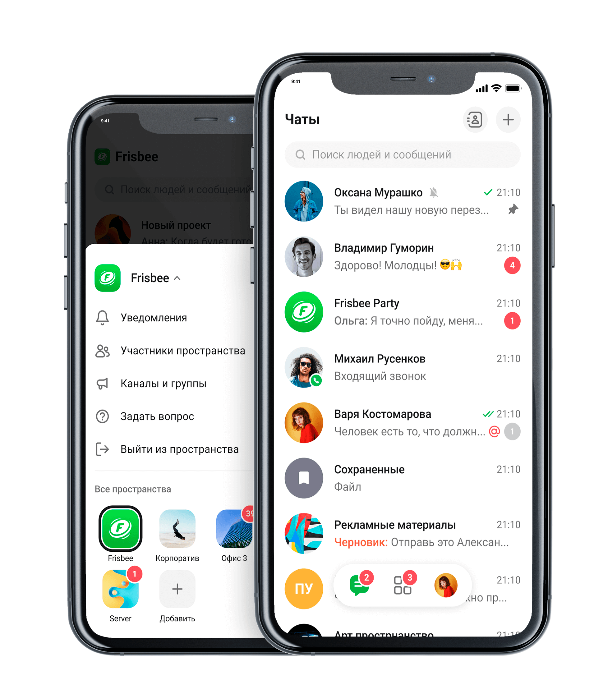 Публичные мессенджеры, такие как Whatsapp и Telegram, идеально подходят для личных переписок, и некоторые компании пытаются использовать их как рабочую среду для коммуникации. Но публичные мессенджеры не имеют инструментов управления пользователями, размещения данных и настройки политик безопасности. Frisbee сочетает в себе удобство использования публичных мессенджеров и функционал, необходимый для эффективной работы, предлагая различные варианты для безопасного хранения и развертывания.